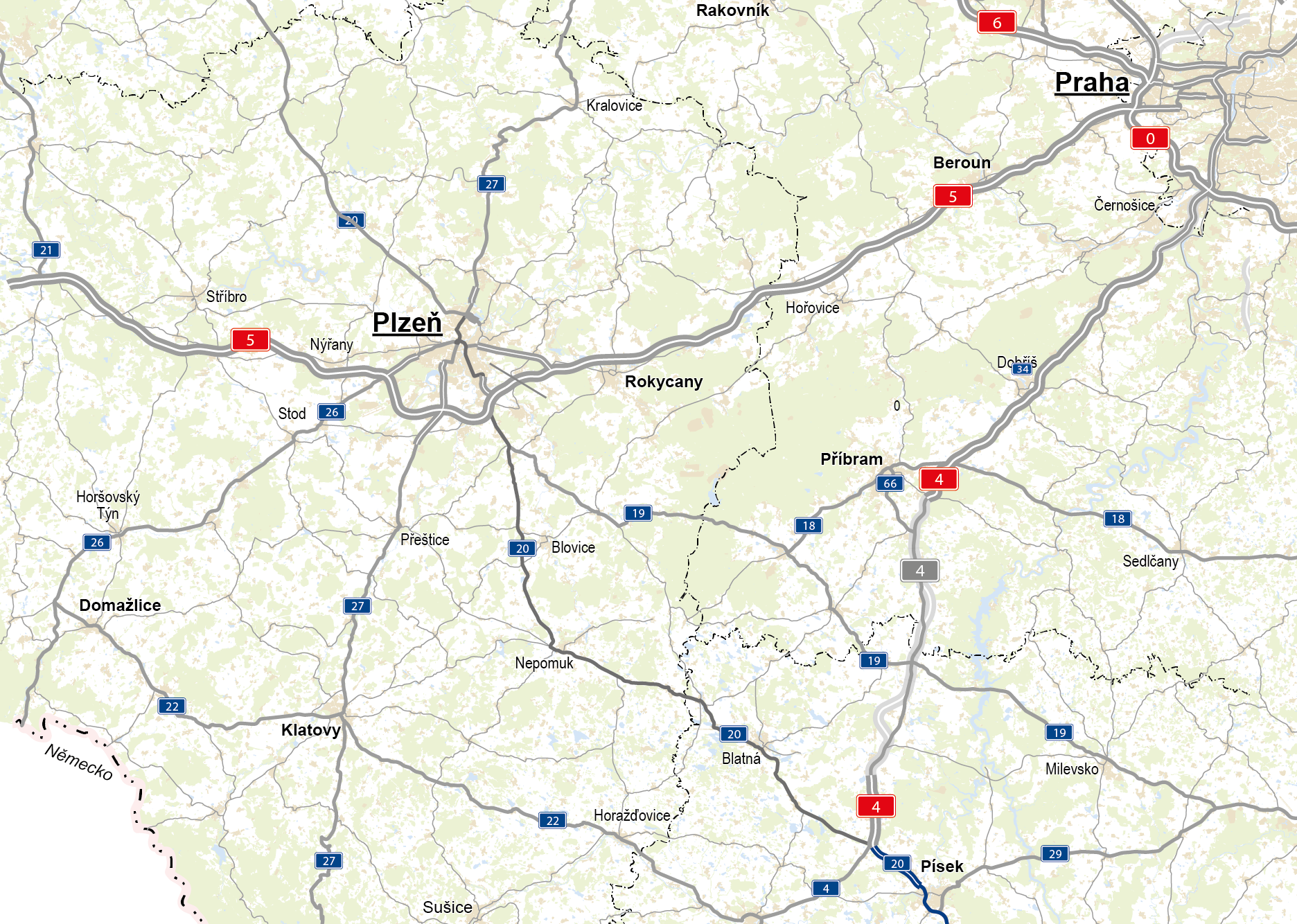 Silnice I/20 - Karlovy Vary – Toužim – Plzeň – Nepomuk – Blatná – Písek – Vodňany – České Budějovice